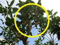 となりにある、もう一本の柿の木はすでに実が熟して、鳥や虫のえさになっています。