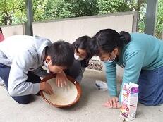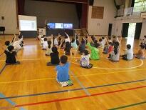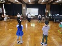 ここでは、グループごとに名前バトンとタオルリレーの2つのゲームをしました。