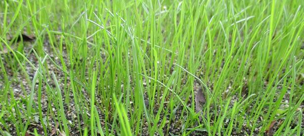 10月1日にまいた冬芝の種が発芽して1か月経ち、芽がしっかりしてきたので