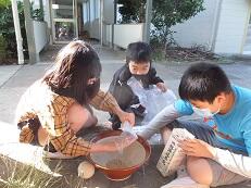 2日目はまいた種の上に、厚さ3mmで砂をまいて覆土します。
