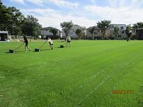 10月2日に夏芝の上に冬芝の種をまくオーバーシーディングの工事が終わりました。