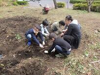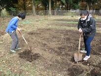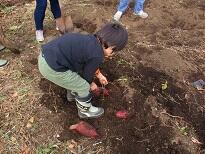 遊びから戻り、カブトムシが欲しい子は幼虫を採りに行きました。