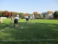 落ち葉のプールに向かって、落ち葉の上を滑ります。
