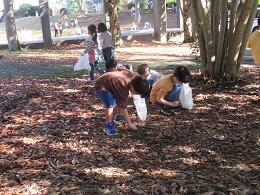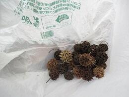 ドングリやモミジバフウの実(写真右下)をたくさん拾うことができました。