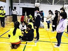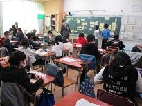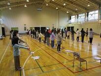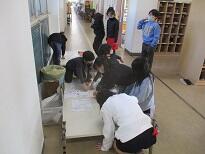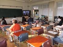 1年生は学年合同で実施しました。80名もの入室管理が大変でした。