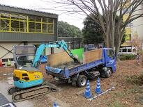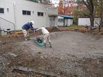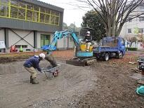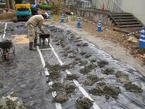 校長と学校用務職員、スクールサポートスタッフが1日かけて敷きました。