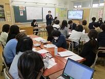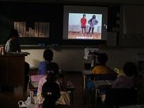 5年生も学年合同です。普段、教員ははウィンドウズでスライドを作っているので