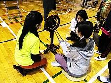 練習したい曲ごとのグループ練習では上学年のリーダーを中心にして練習します。