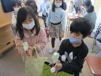 子どもたちは、事前に染め方を調べ、染めたい模様をイメージして、