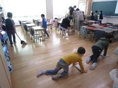 本校では、6年生が1年生の教室へ行って清掃を手伝います。(上2枚の写真)