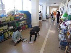 グループごとに場所を分担して掃除をしています。