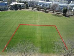 本校の全面芝生校庭は、多摩市教育委員会が芝生校庭管理の専門の方に委託して