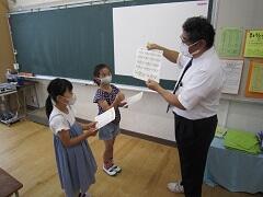 芝生スタンプカードにスタンプが5個貯まったので表彰しました。