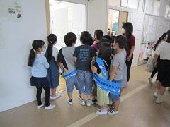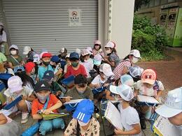 7月6日、小雨が降る中、2年生が生活科で鶴牧商店街へ町探検へ行きました。