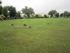 非常事態宣言発出のため学級ボランティアによる芝生管理作業を中止しているので、