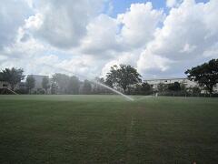 7月28日、芝生校庭の散水用スプリンクラーの第2系統(東側)の校舎側のスプリンクラーが