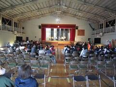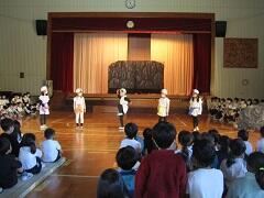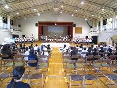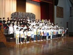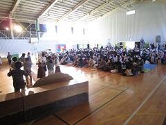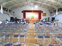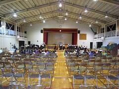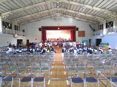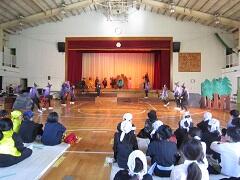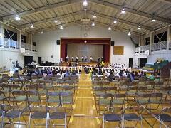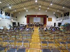 学芸会当日は、体育館にいる2つの学年は体育館で歌い、
