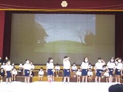 11月29日、ライブ映像と校内放送で児童朝会をしました。