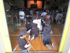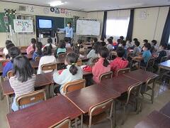 1年生と5年生は天気が良くなかったので教室や体育館で行いました。