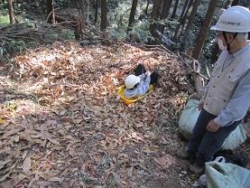 はじめに落ち葉や枝、石を拾ったり、雑草を抜いたりしました。