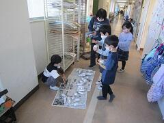 こちらも子どもたちに縫わせていただきました(写真左)。