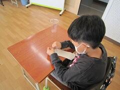 指先に力を入れて紙をちぎります。はじめは苦戦していましたが、だんだん上手になっていきました。