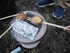 焼いもだけでなくも炭になった木を七輪に入れて、シイタケやマシュマロ、