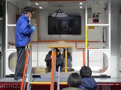 この日、学校では地震の避難訓練とともに、5・6年生は大地震を体験する起震車体験を行いました。