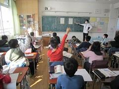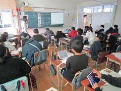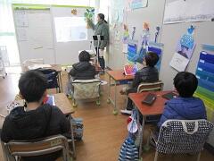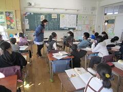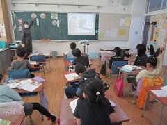 校長との懇談の後、全学級の授業を順番に参観しました。