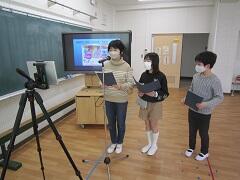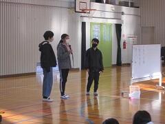 環境委員が操作をします。資源の分別をドラマ仕立てにして紹介しました。