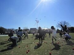 2月21日は2・4年生の玉入れを、22日は3・6年生とふたば学級の玉入れをしました。