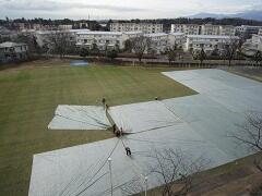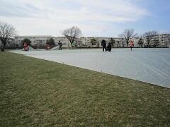 鶴牧サッカークラブの方が午前中のうちに養生シートを移動してくださいました。