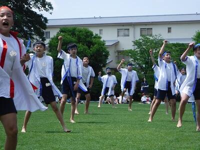 今年度の運動会、競技・演技の最後は、6年生とふたば6年による「百花繚乱~南鶴ソーラン~」です。