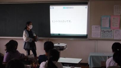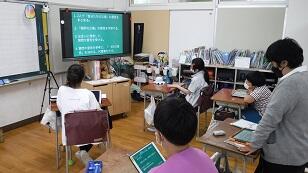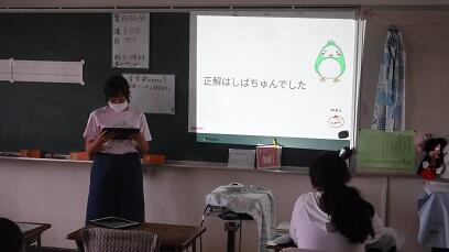 今日の授業ではタブレット端末に準備された鳥のくちばしの画像から、実際に問いの文と答えの文を書く学習をしていました。