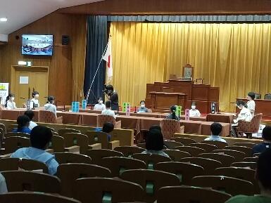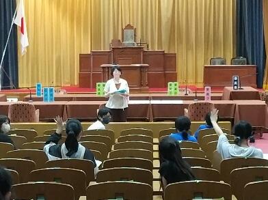 はじめに法律案や予算案を審議する委員会を疑似体験できるプログラムを行いました。