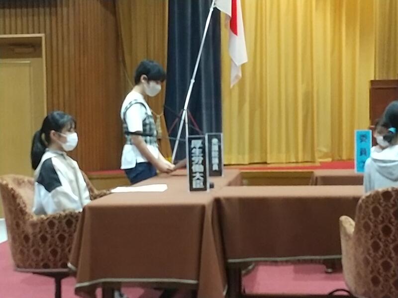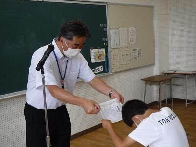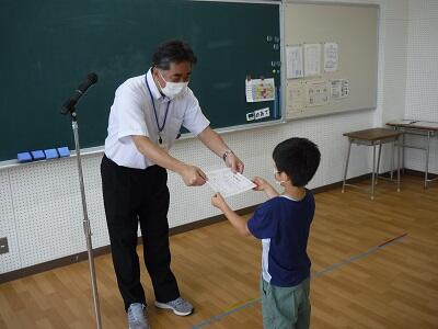 また、今日は3年生と4年生の2人に、芝生管理作業参加の表彰を行いました。