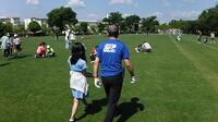 ボール投げ。いわゆる「遠投」の動きを初めて体験する子供もいたようです。