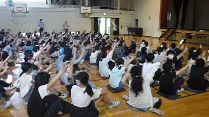ちなみに授業は、4台の冷風機をフル稼働させ、体育館で行いました。
