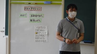 熱中症指数が厳重注意をさすときの休み時間や体育の時間は、休憩や水分補給をとること、暑さが苦手な場合は、無理をせず、教室で静かに過ごすことを伝えました。