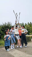 廃材の木の棒の先に布を巻きますが、これがなかなか難しかったようです。