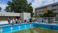 水泳指導の無くなったプールは防火水槽として、常に水が入っています。そして、施設保持のために、毎年水を抜き、業者の清掃作業が入ります。