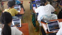5年生では、沖縄県と東京都の様子を資料から比較して、あたたかい気候の地域のくらしについて学習問題をつくる授業でした。