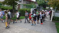 子どもたちは避難訓練開始の放送と共に、学級担任からの指導を受け、方向別に下校しました。
