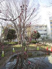 「学校環境緑化モデル事業」としてビオトープの改修と西門脇のミザクラの植樹をしました。