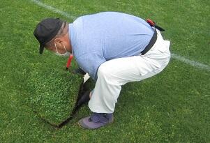 砂は戻します。夏芝の根がぎっしりと詰まっていますが
