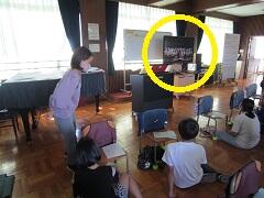 今回は教育支援ソフトの会議システムを使って、各学級へ画像を送信しながら実施しました。