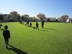 芝生校庭は、午前中、学芸会の入場待機場所となるため芝刈りができません。