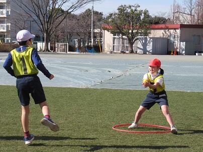 ベースボール型ゲームの講師として、読売ジャイアンツのジャイアンツアカデミーから毎年コーチをお呼びして、投げる・捕る・(塁間を)走る、という基本的技能を教えていただいています。