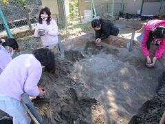 当日は動線沿って肥料、種、砂、水を用意しました。