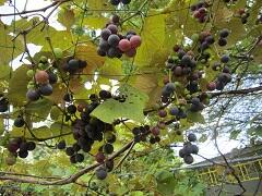 プールの入口にあるブドウ棚のブドウが熟し始めています。